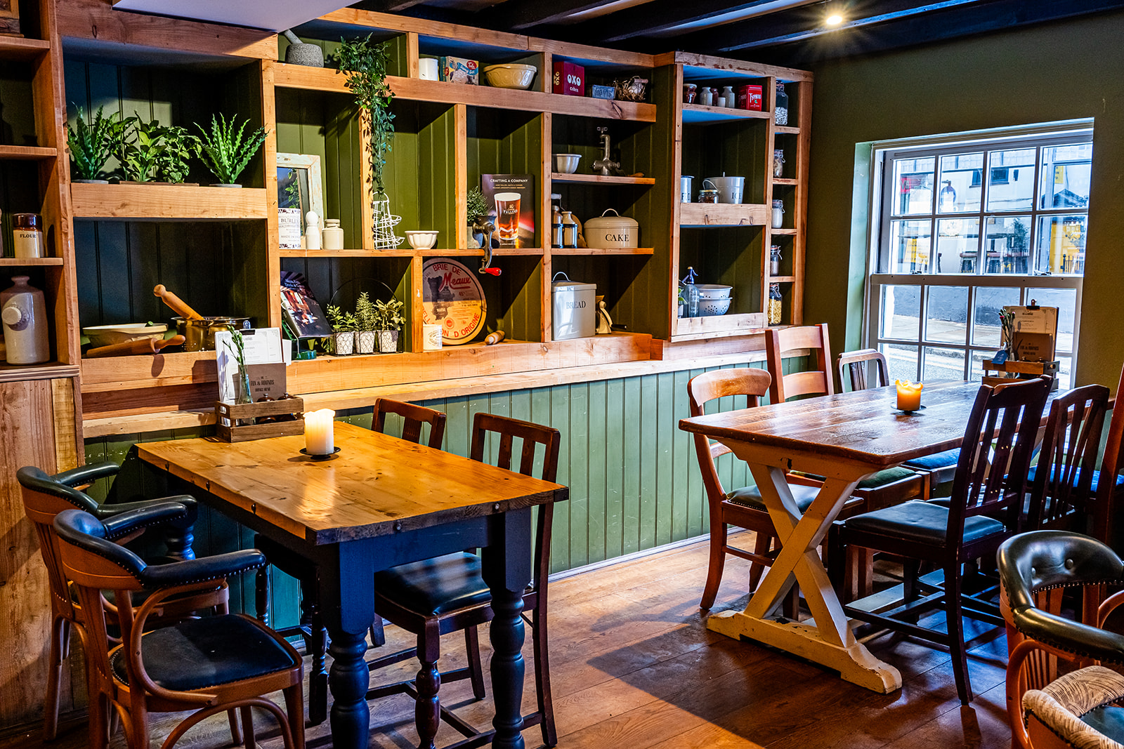 Our whole dining room, seating up to 45 across separate tables, is also available to hire for buffets and sit-down meals.